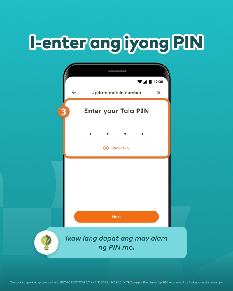 Tip: Ikaw lang dapat ang may alam ng PIN mo. ‘Wag itong i-share kahit kanino — kahit kanino pa magpakilala — para manatiling ligtas ang iyong account.
