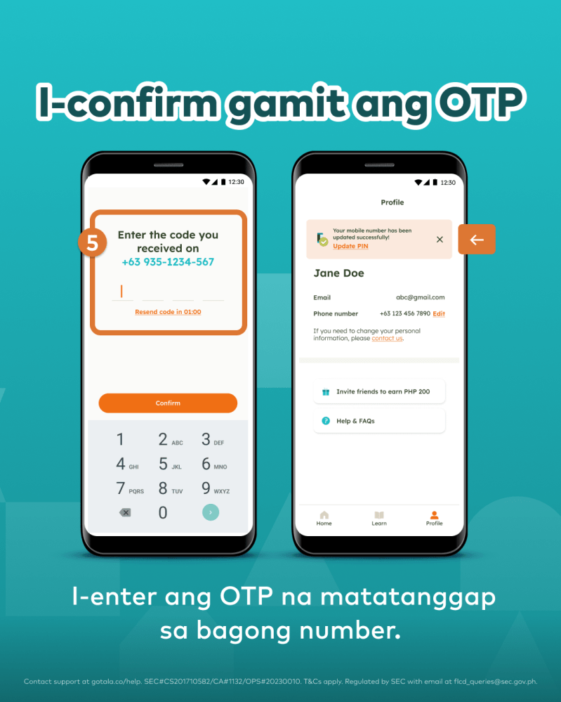 Makakatanggap ka ng One-Time Password (OTP) sa bagong phone number.